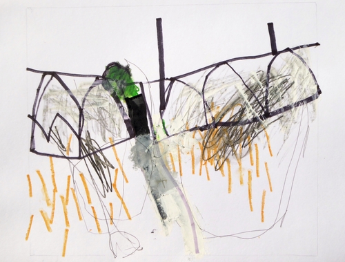 Granite boulders at the edge of a field, and defining its boundary, provided the inspiration for this drawing (about 30 x 40cm) made with markers and pencil crayons.