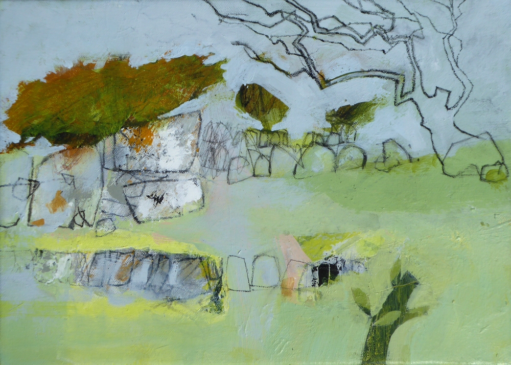 25x35cm, mixed media on canvas painting continuing my theme of dilapidated granite ‘hedges’ together with the wind blasted vegetation that grows on, under, around and through them. Its a symbiotic relationship. Interesting to consider that plants can pull down a granite wall if left untended, and given time and the west Cornish climate.