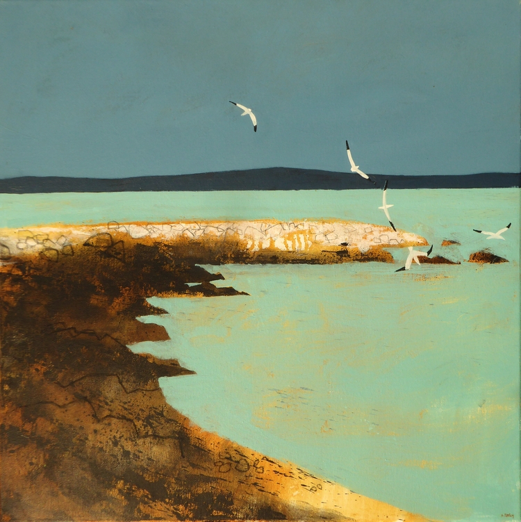 This painting, called ‘Balletic Gannets’ (60x60cm). has just been collected from my studio and will be on its way, with about thirty others, to Thackeray Gallery, Kensington for my solo show there beginning on 10th March. Preview days are Thurs 5th March 12-6, Fri 6th March 12-6 and Sat 7th March 11-4.