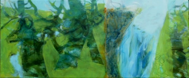Still starting new paintings last week but managed to more or less complete this one (50x120cm) – not from auspicious beginnings really (see below).  Just goes to show: something can be made from nothing.