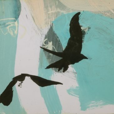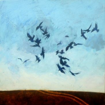 Still working with flight and movement. This small painting is on paper. I think these rooks are looking quite lyrical. Click on the image for the full picture.